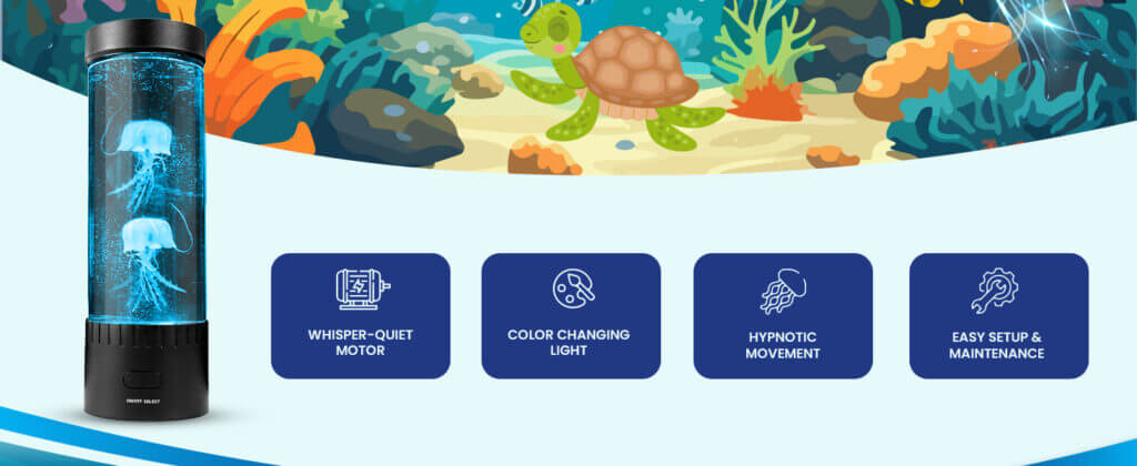 This Jellyfish lamp is perfect for you and your kids. It’s equipped with the upgraded motor that works quietly and increases the durability of the motor. The LED light that emits a calming wavelength of the color blue is perfect for reading or just relaxing. Let this light be a part of your life