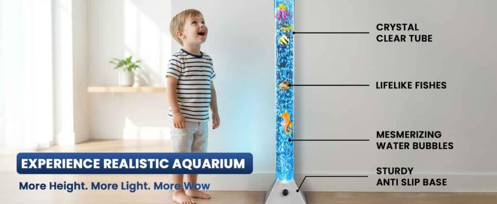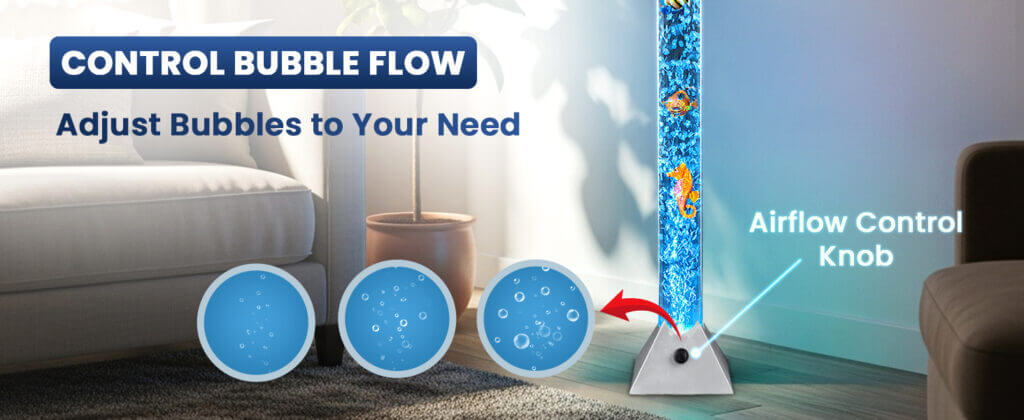 Easily adjust the bubble intensity to match your mood or environment. The built-in airflow control knob lets you fine-tune bubble movement, from gentle, calming streams to lively, energetic flow, creating the perfect sensory experience anytime.